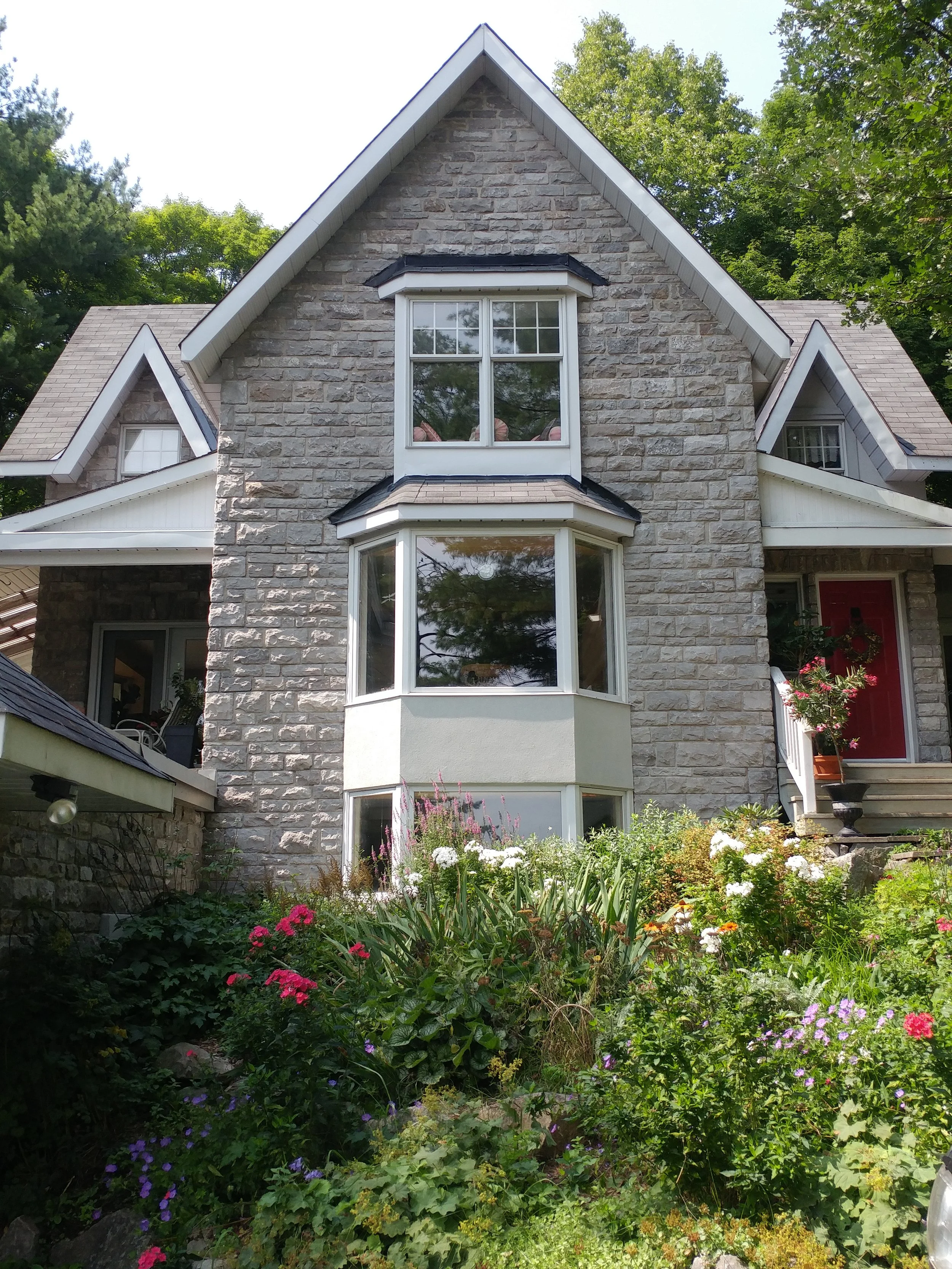 If you’re searching for an elegant country home full of unique character, in the perfect location to enjoy everything Chelsea and the Gatineau River has to offer, look no further than 4 Chemin Helen Mills. This unique property in an exceptional hillside location with incredible vistas overlooking the Gatineau River and Mont Cascades. There is also potential access to the patio and dock located on the riverside, for swimming, boating, and other water activities… or just relaxing in the tranquility to enjoy the views. This custom built limestone home was designed by renowned architect Chuck Wheeler in a traditional Gothic Revival style, constructed with advanced building techniques in 1998. Carefully situated within a microclimate with sunny exposure to the South-Southeast, elevated from the riverside, fresh country air, surrounded by open gardens and fruit trees, and protected by mature forest canopy, this property has amazing ambiance and charisma.